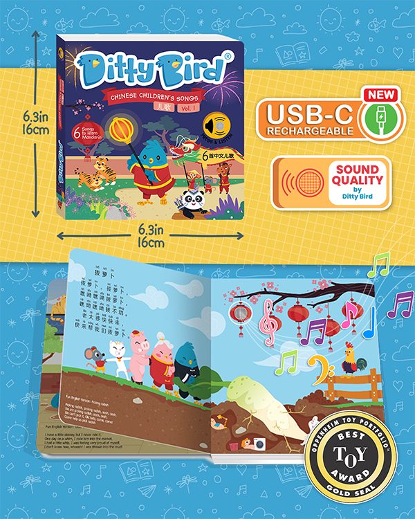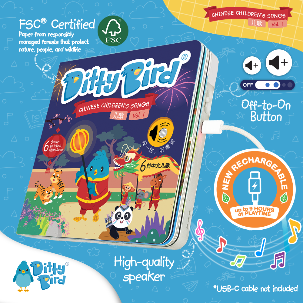 Ignite your child's curiosity and love for languages with Ditty Bird’s Chinese Children’s Song in Mandarin sound book! Featuring 6 favorite Chinese songs, it's the perfect blend of fun and education, providing a playful way for kids to immerse themselves in the beauty of Mandarin through music.
