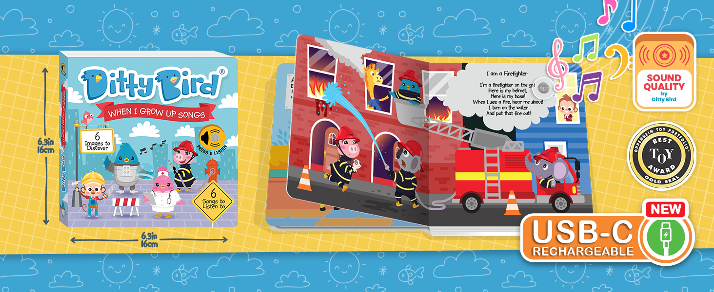 Inspire your little one's career aspirations with Ditty Bird's Career Songs sound book! Packed with charming melodies such as "To the Hospital" and "I am your teacher," this interactive book introduces preschoolers to a range of professions, planting the seeds for future ambitions in a fun and engaging way.
